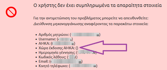 Αν έχετε το παρακάτω πρόβλημα με τη χώρα έκδοσης ΑΜΚΑ, δηλαδή η χώρα έκδοσης ΑΜΚΑ εμφανίζεται κενή, τότε επικοινωνήστε με τη γραμματεία σας και ενημερώστε τους ότι από το τμήμα υποστήριξης σας έχουν ενημερώσει ότι λείπει η χώρα ΑΜΚΑ και πρέπει να συμπληρωθεί από τη γραμματεία.